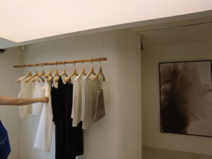 白を基調にした空間に並ぶ服たちはまるでアートのよう。