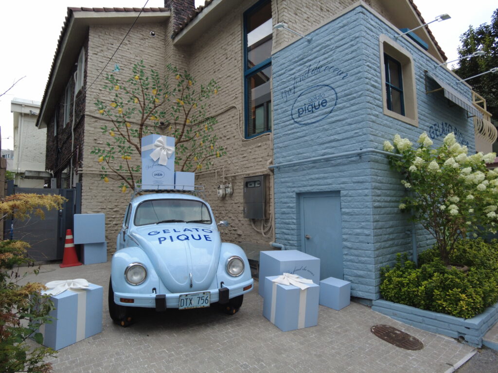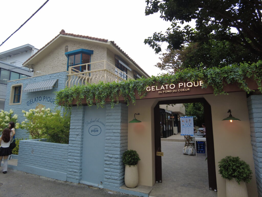 通りを歩いていてまず目を引くのは、柔らかいパステルカラーの外観が印象的なジェラート ピケの漢南洞店。